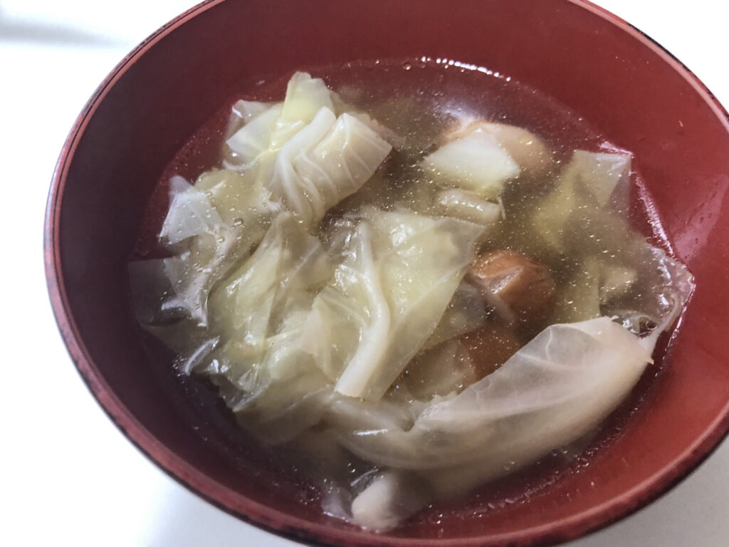 今日、キャベツの芯を使ったスープを作った。
